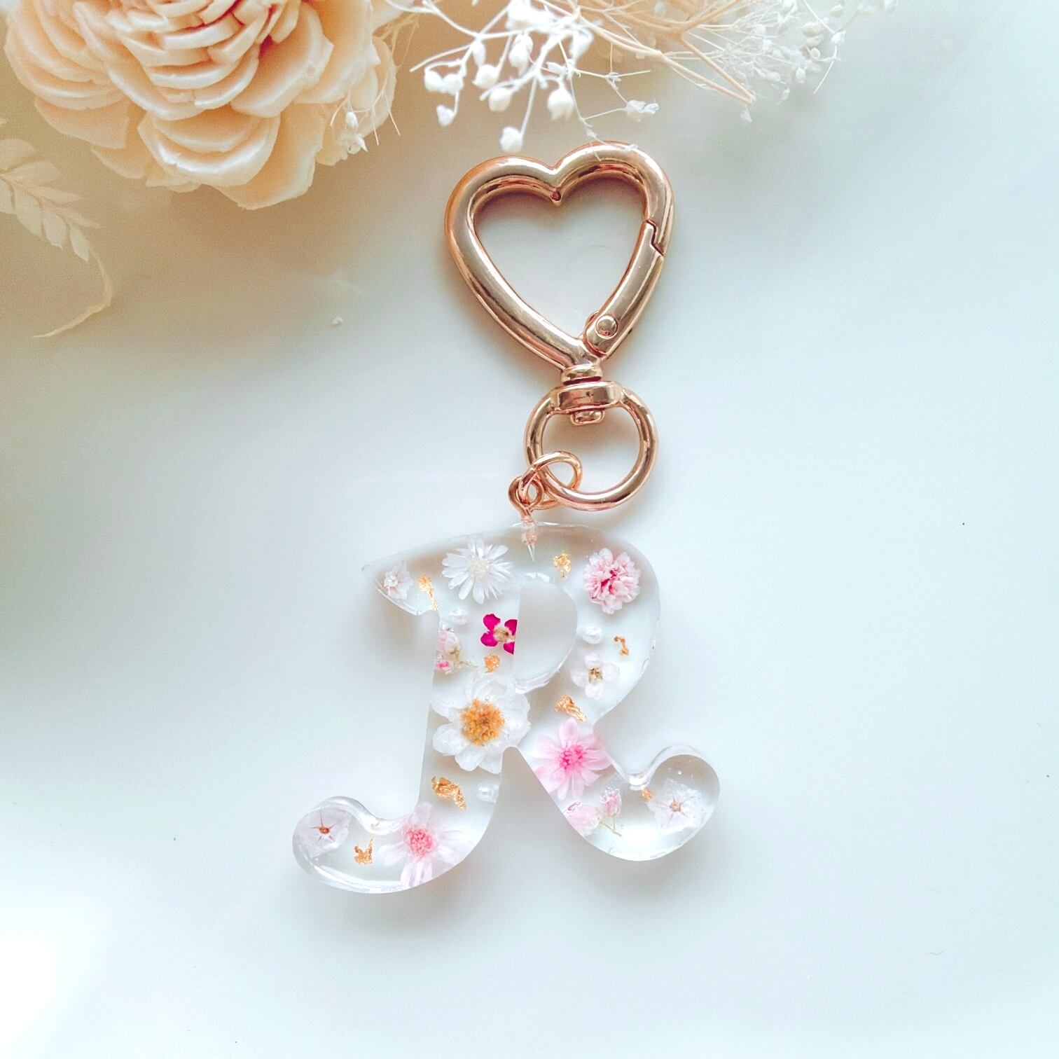 オーダー制 イニシャルキーホルダー ボタニカル レジンチャーム キーホルダー ドライフラワー アルファベットチャーム 推し活 プレゼント◎